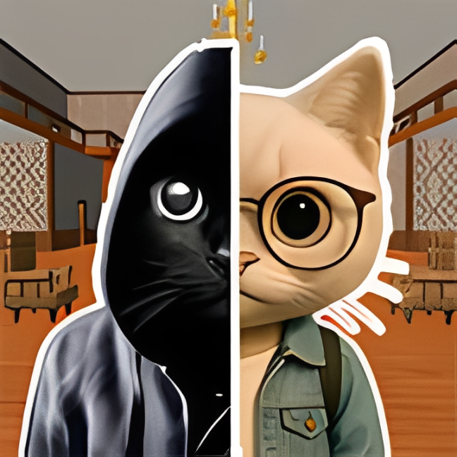 The story in Boo Scared: The Story of Okak begins after the events in Schoolboyevo, when Boo the cat disappears under suspicious circumstances. Kotyan, the Smart Cat in Glasses, creates a time machine to help recover Boo and guide the adventure through unexpected twists. Each encounter with characters reveals clues, while the story pushes deeper into the mansion’s unsettling atmosphere.