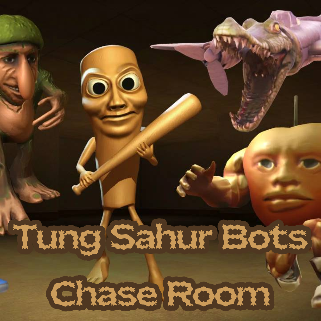 Tung Sahur Bots Chase Room begins in a dimly lit maze filled with meme echoes and distorted laughter. Trapped inside this surreal labyrinth, players encounter a world where humor turns horrifying and chaos reigns. Each bot moves with unpredictable energy, forcing constant attention to every hallway and flickering light. The Brainrot monsters relentlessly pursue anyone too slow to react. The tension rises with every second, making survival feel like a frantic test of nerve and timing.